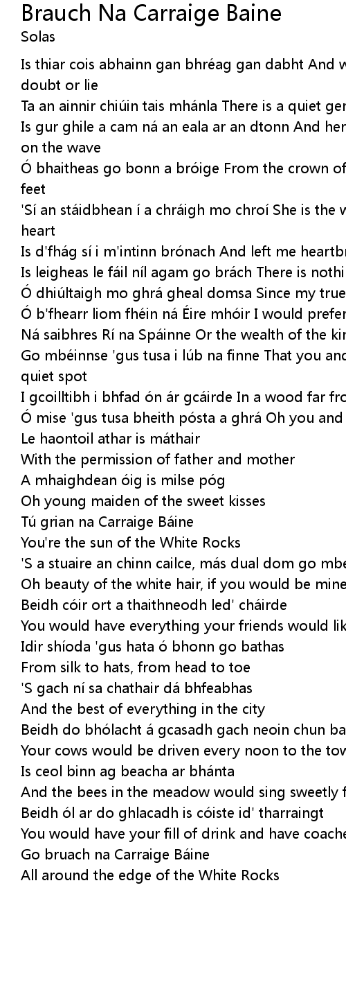 | Go mbe innse ' gus tusa i lu b na finne That you and I could be together in a quiet spot | |