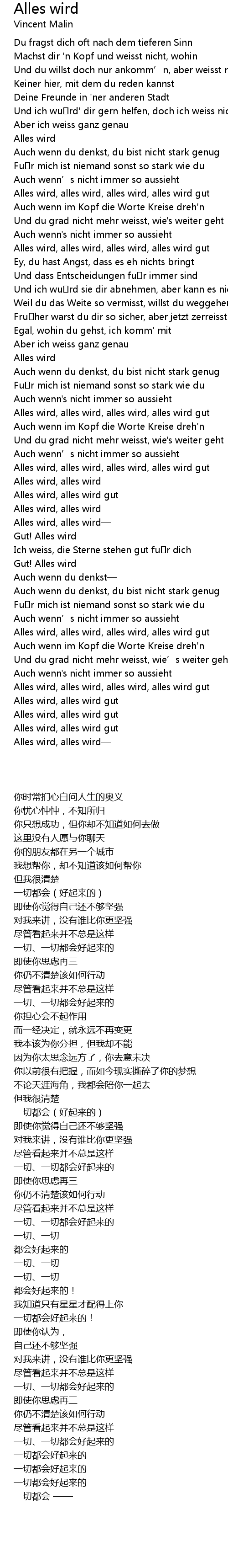 | [00:43.709] | Alles wird, alles wird, alles wird, alles wird gut |