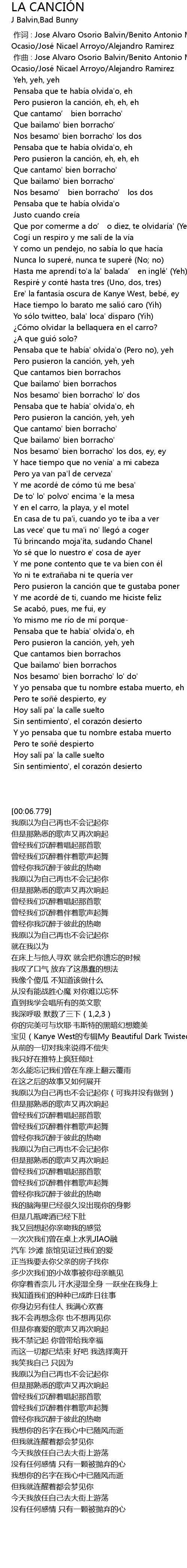 | [00:01.000] | zuo qu : Jose Alvaro Osorio Balvin Benito Antonio Martinez Ocasio Jose Nicael Arroyo Alejandro Ramirez |
