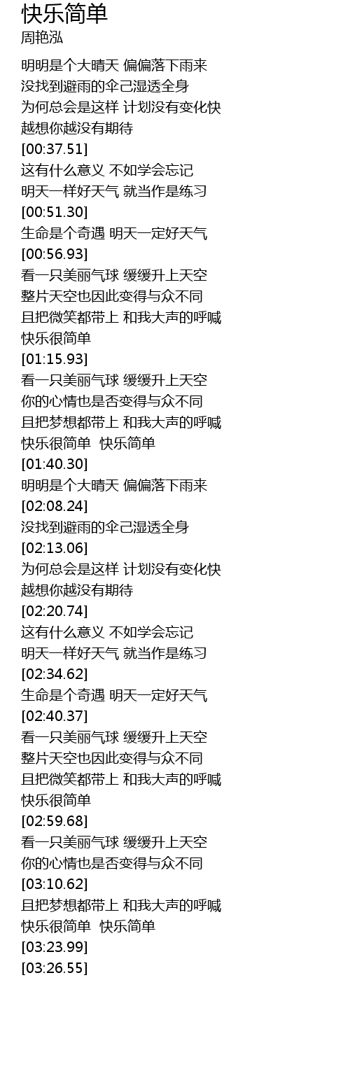 | [03:15.87] | 快乐很简单 快乐简单 |