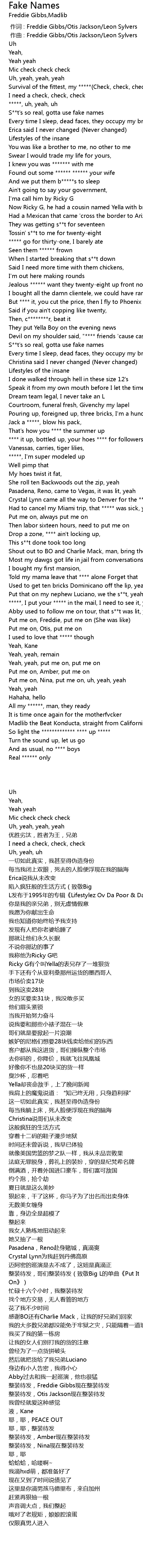 | [00:21.43] | S**t's so real, gotta use fake names |