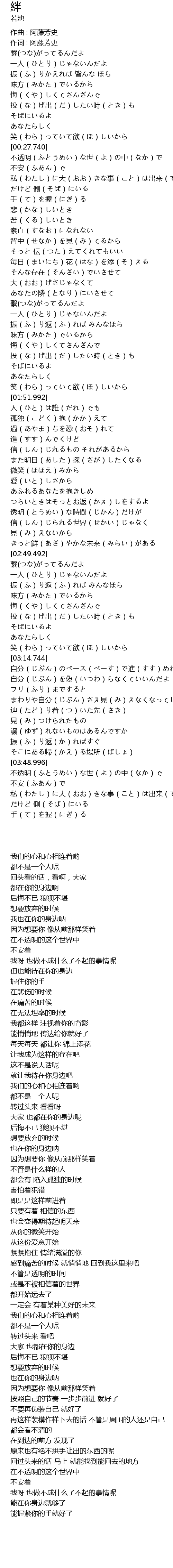 | [02:49.994] | 繋(つな)がってるんだよ |