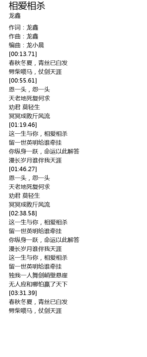 | [02:39.63] | 这一生与你,相爱相杀 |