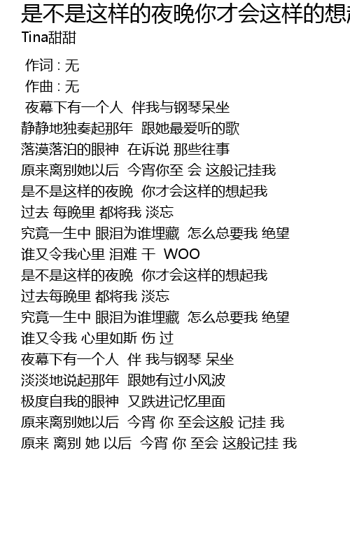 | [01:16.20] | 是不是这样的夜晚 你才会这样的想起我 |