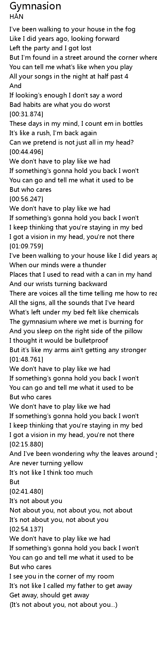 | [01:03.796] | I keep thinking that you're staying in my bed |