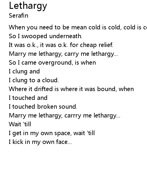 | Marry me lethargy, carry me lethargy... | |
