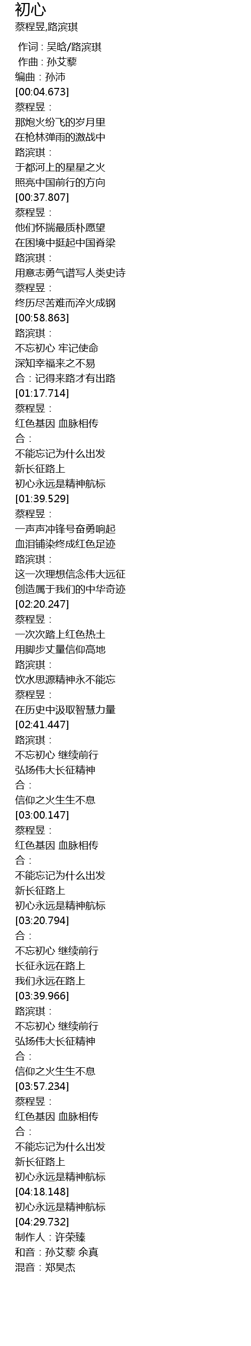 | [04:19.615] | chu xin yong yuan shi jing shen hang biao |