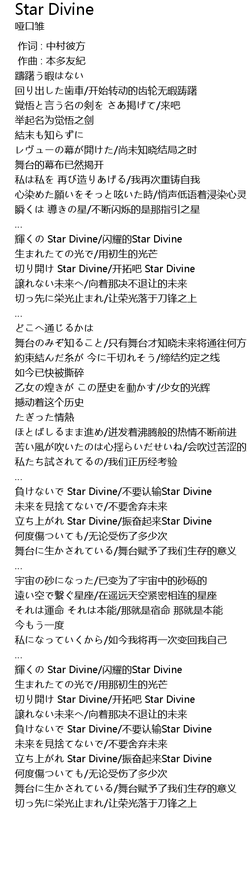 | [03:15.03] | 輝くの Star Divine/闪耀的Star Divine |
