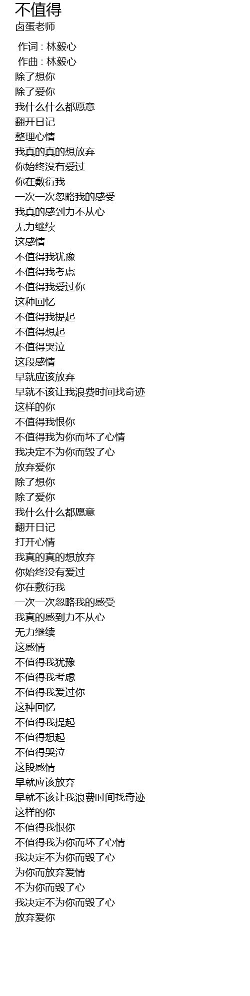 | [03:57.937] | 不值得我为你而坏了心情 |