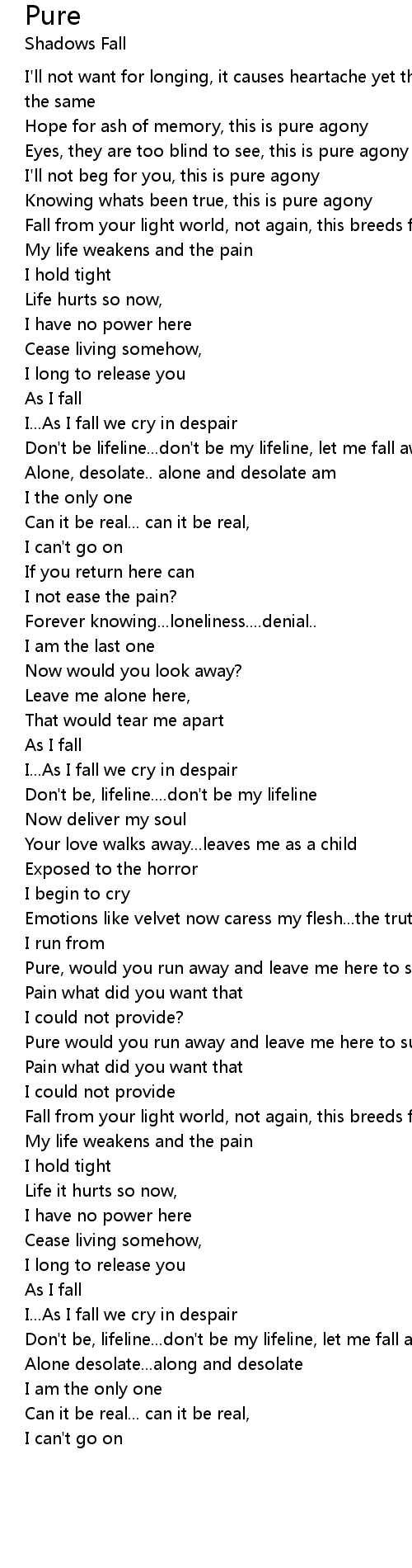 Knowing whats been true, this is pure agony |