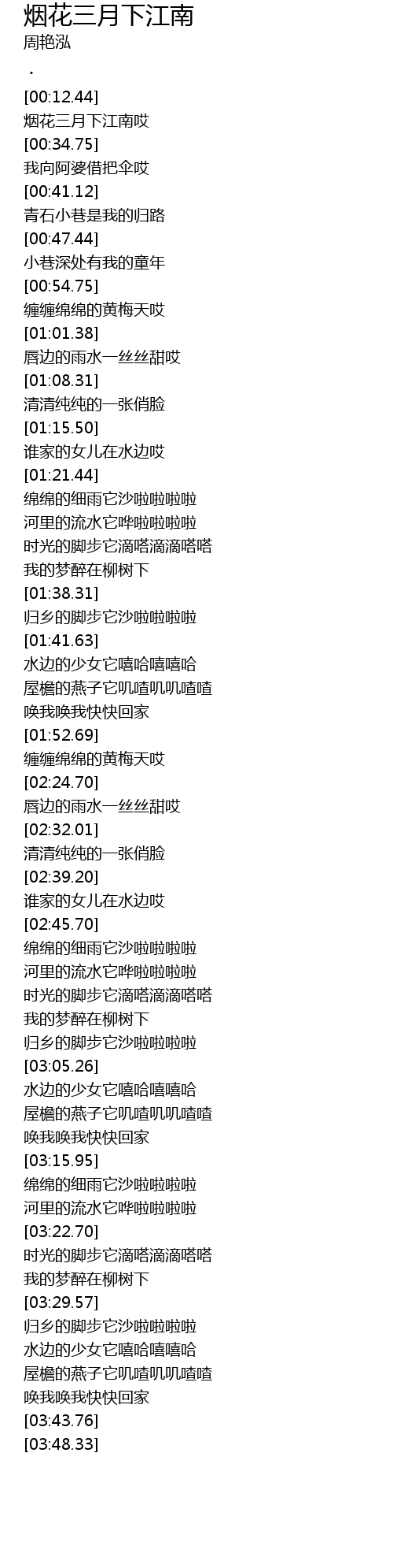 | [00:29.44] | yan hua san yue xia jiang nan ai |