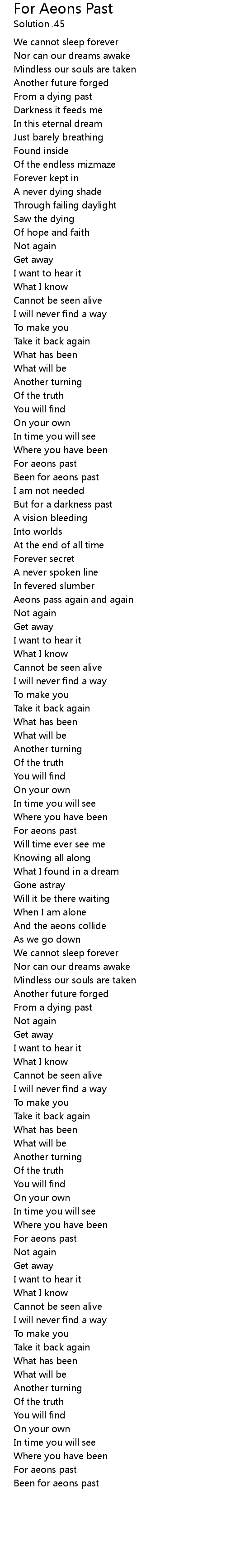 Been for aeons past |