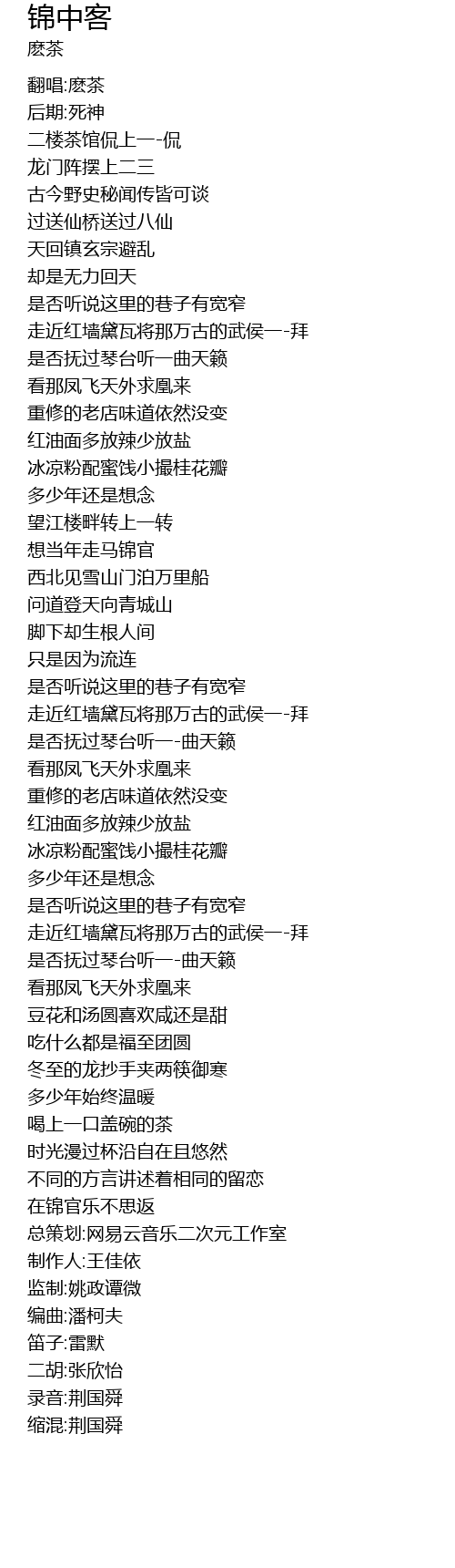 | [01:34.516] | 想当年走马锦官 |