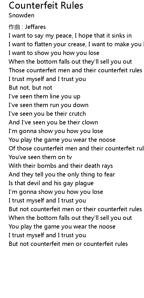 | But not counterfeit men or counterfeit rules |