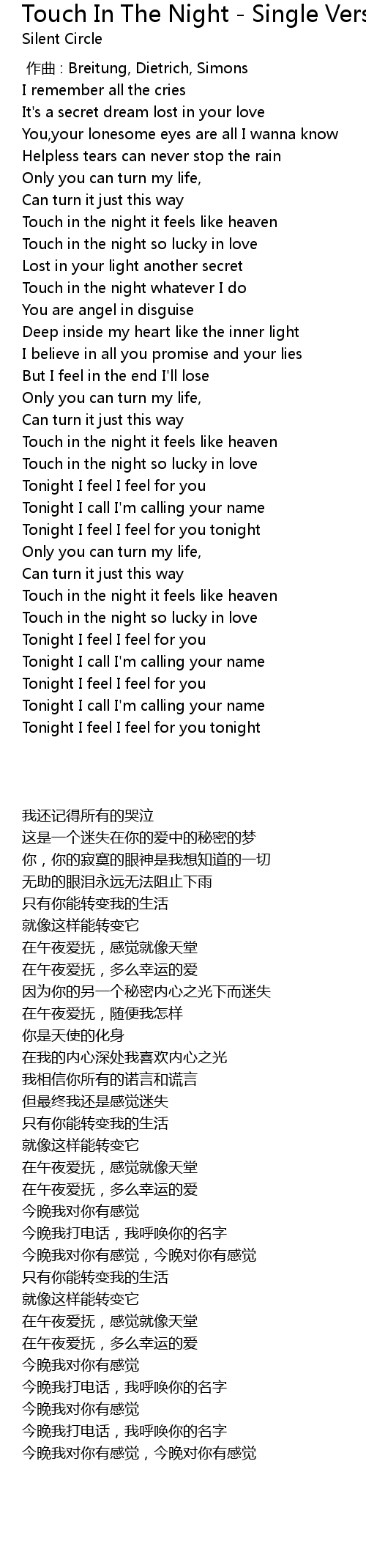 | [03:32.38] | Tonight I feel I feel for you tonight |