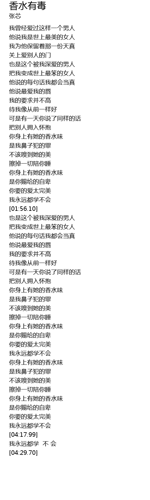 | [03:58.09] | 你身上有她的香水味 |