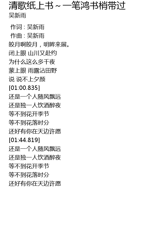 | Song | 清歌纸上书~一笔鸿书梢带过 |
