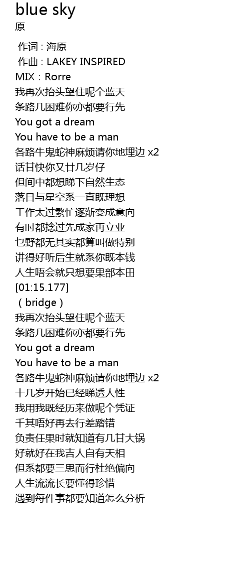 | [00:22.433] | 我再次抬头望住呢个蓝天 |