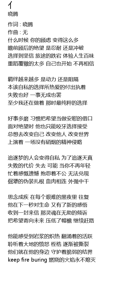 | keep fire buring 燃烧的火焰永不熄灭 |