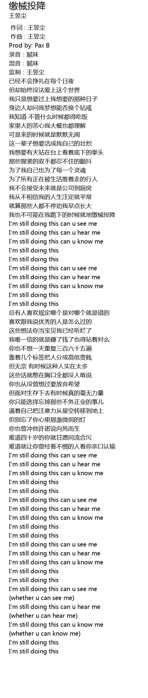 | [00:59.085] | 我也不可能在我跪下的时候就地缴械投降 |
