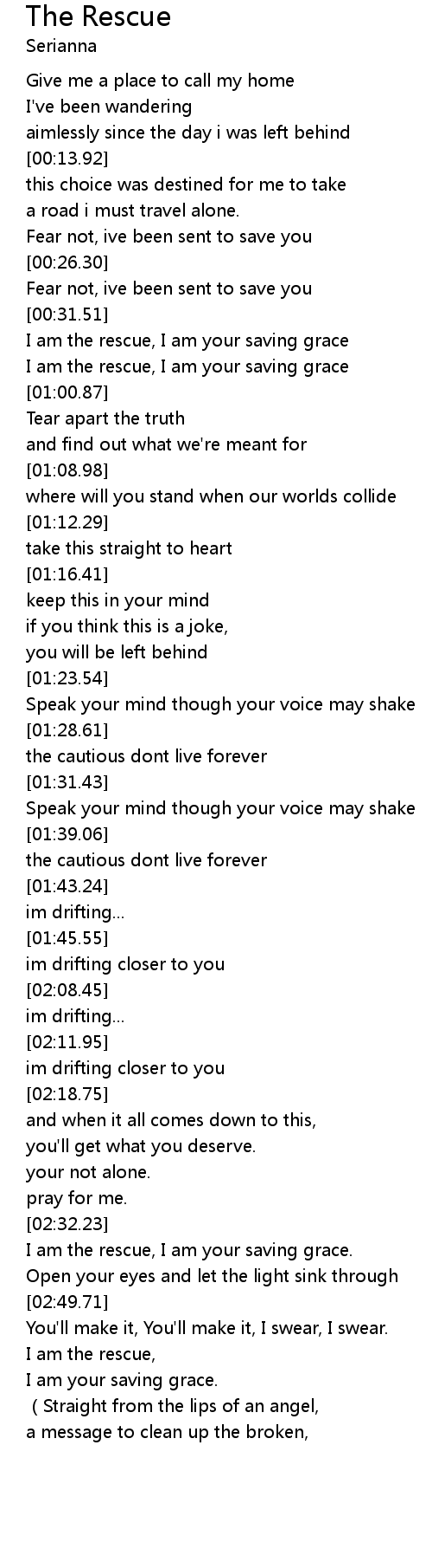 | [00:53.68] | I am the rescue, I am your saving grace |