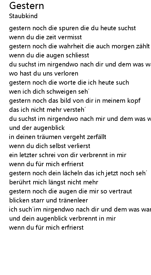 | gestern noch die worte die ich heute such | |