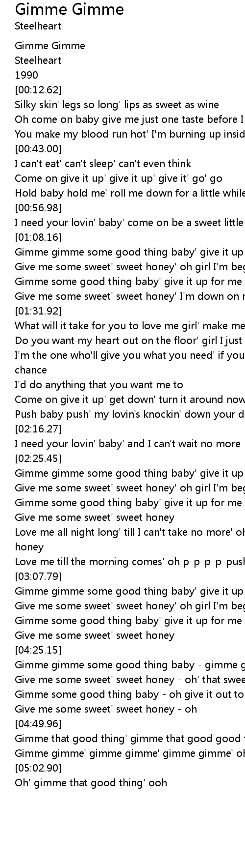 Gimme gimme some good thing baby - gimme gimme' gimme gimme |