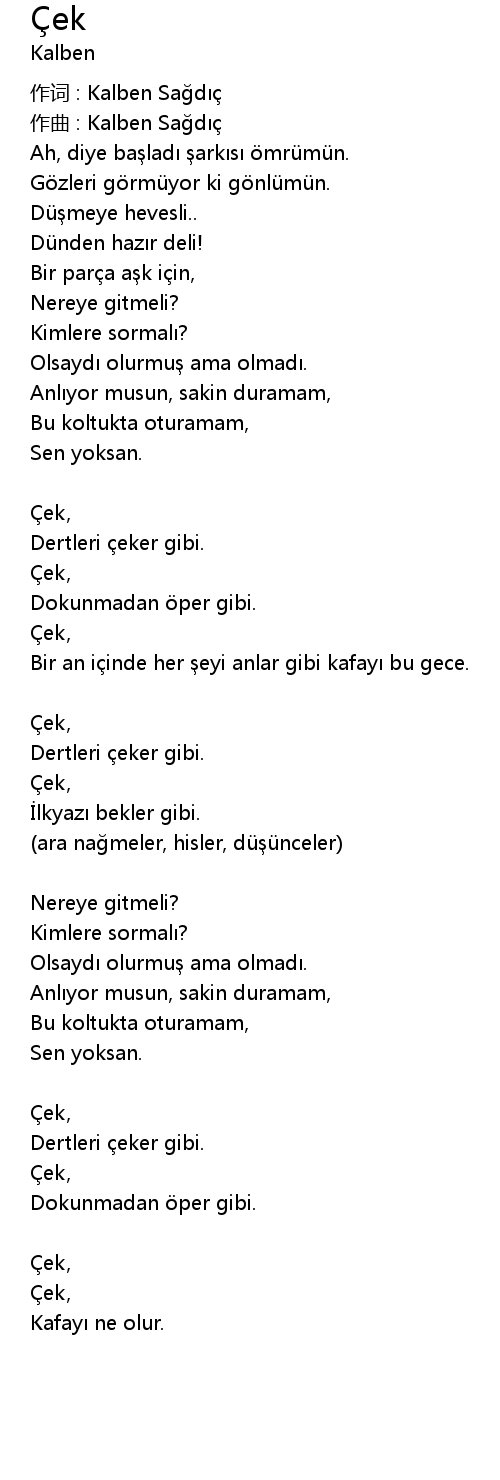 | Bir an i inde her eyi anlar gibi kafay bu gece. | |