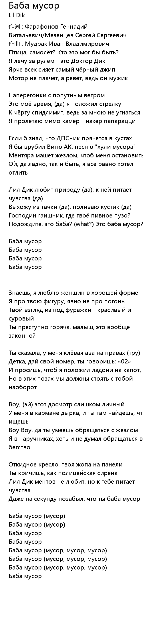 Баба мусор  Lyrics