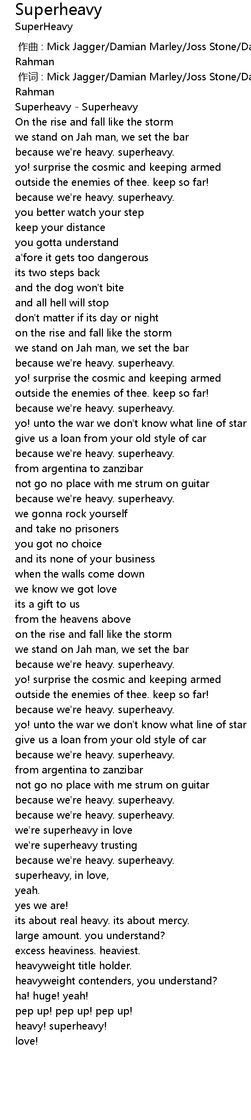 | [03:00.00] | because we' re heavy. superheavy. |