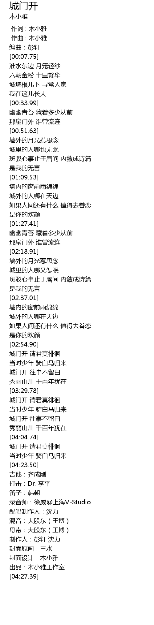 | [04:26.87] | 出品:木小雅工作室 |