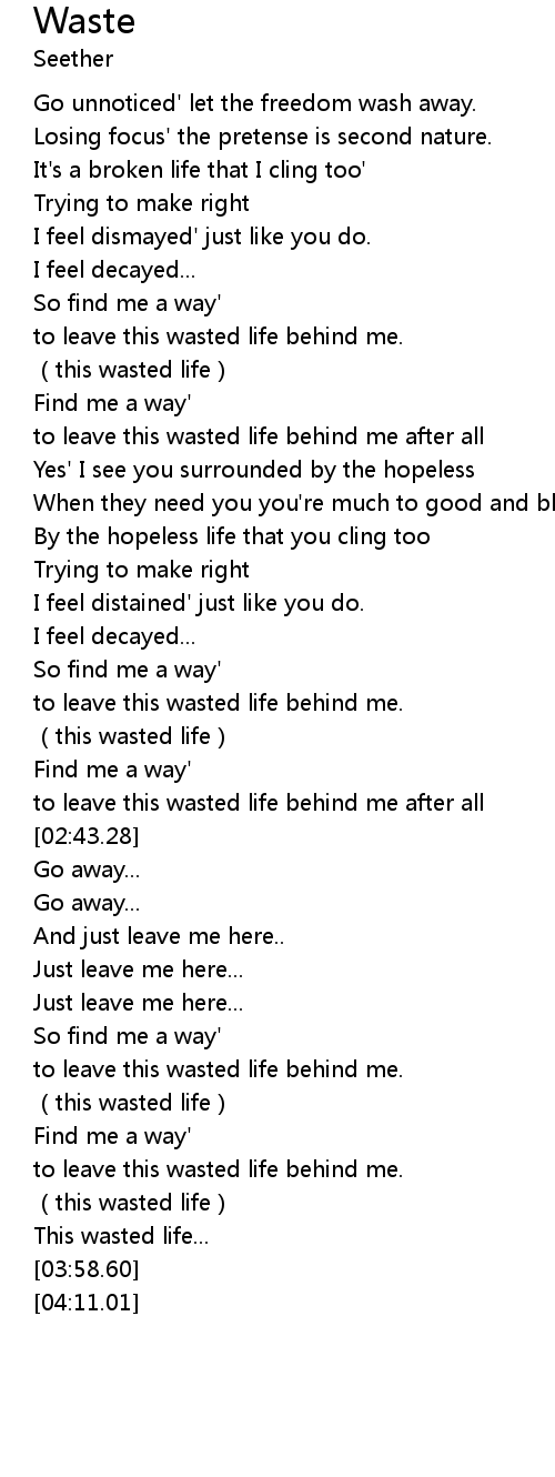 | [00:36.57] | Losing focus' the pretense is second nature. |
