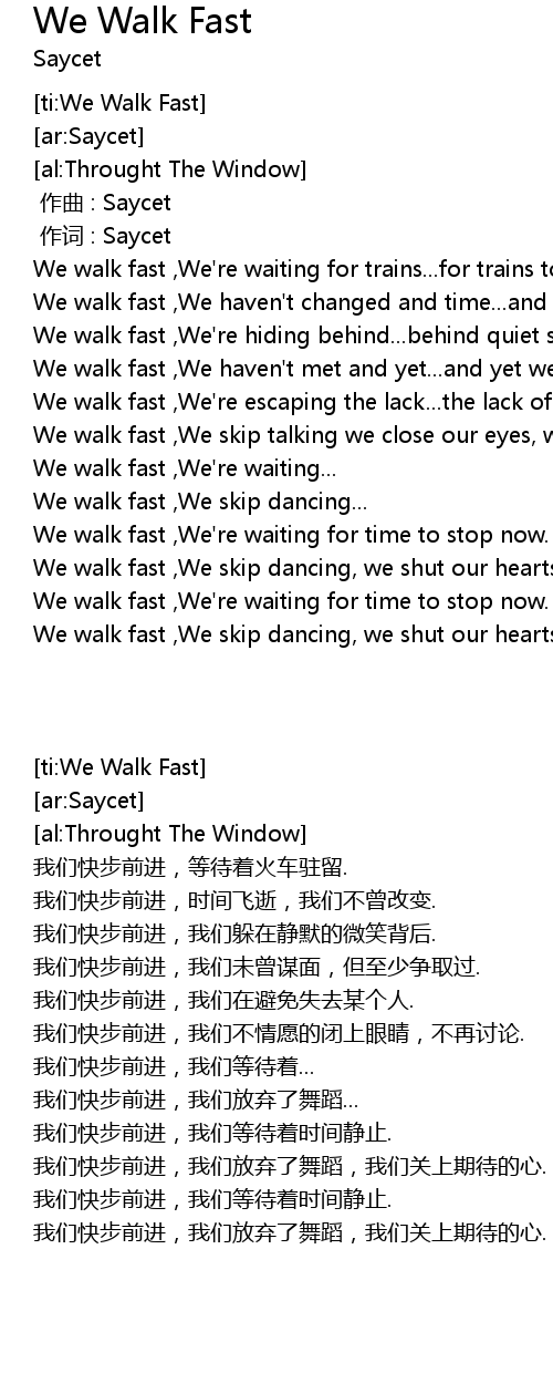| [ti:We Walk Fast] | |