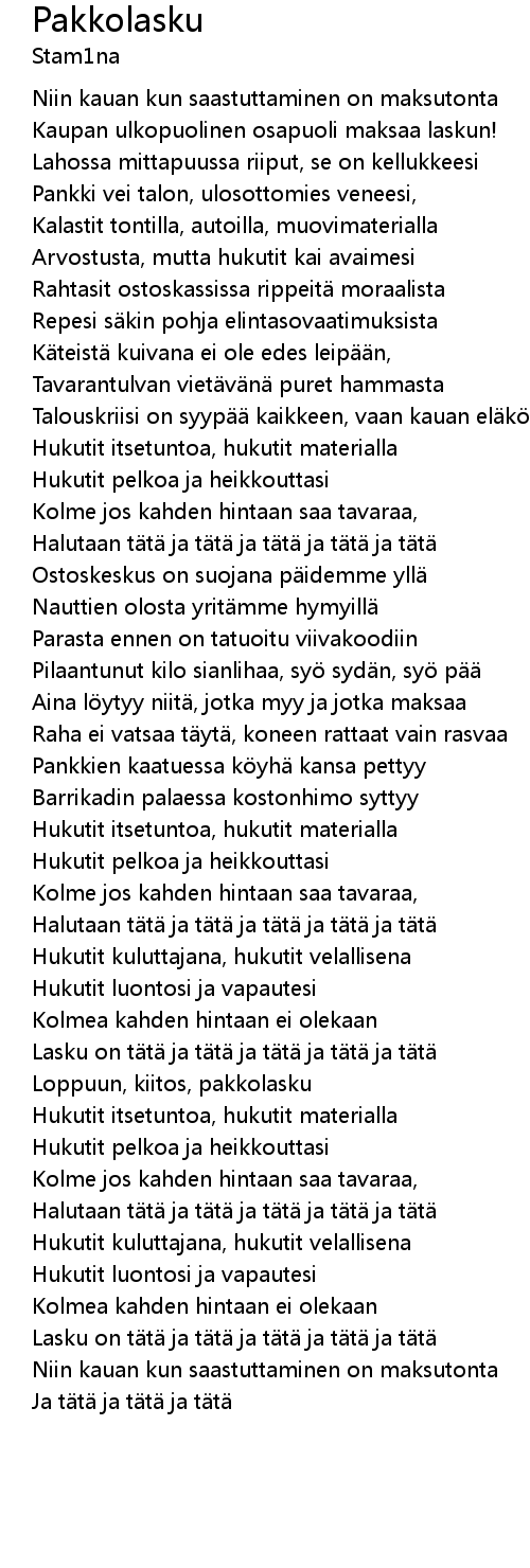 | Song | Pakkolasku |