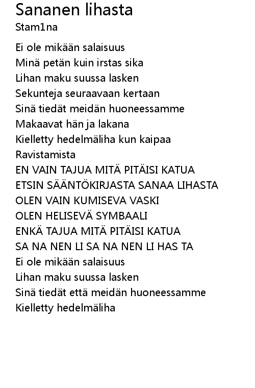 | ETSIN SÄÄNTÖKIRJASTA SANAA LIHASTA | |