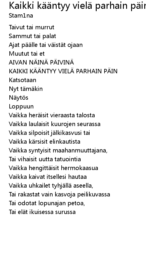 | KAIKKI KÄÄNTYY VIELÄ PARHAIN PÄIN | |