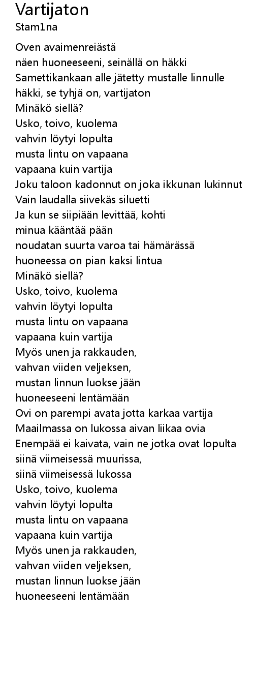 | Joku taloon kadonnut on joka ikkunan lukinnut | |