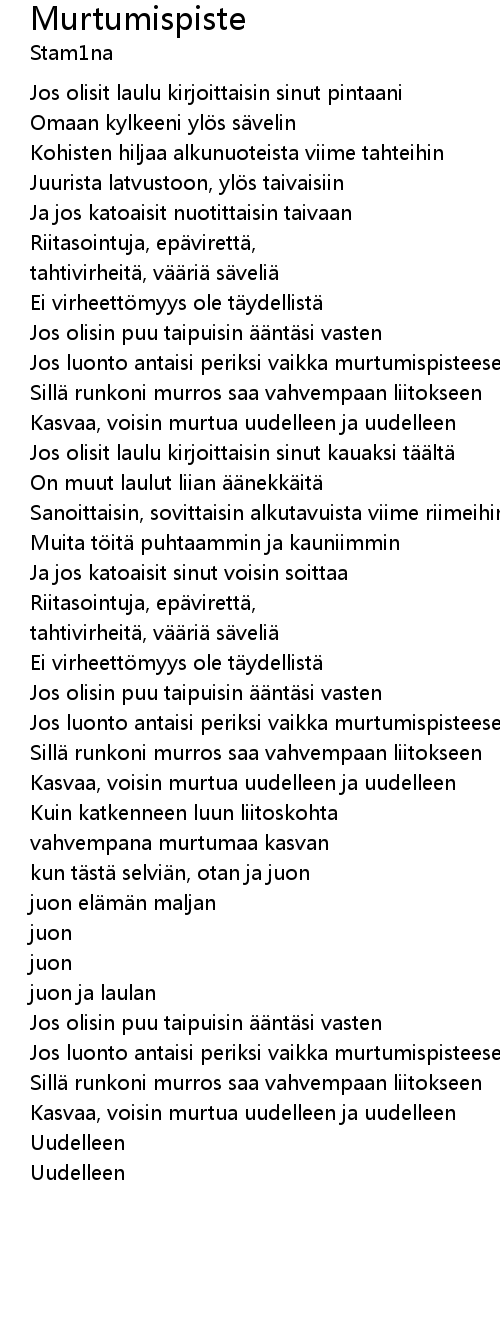 | Jos olisit laulu kirjoittaisin sinut kauaksi t lt | |