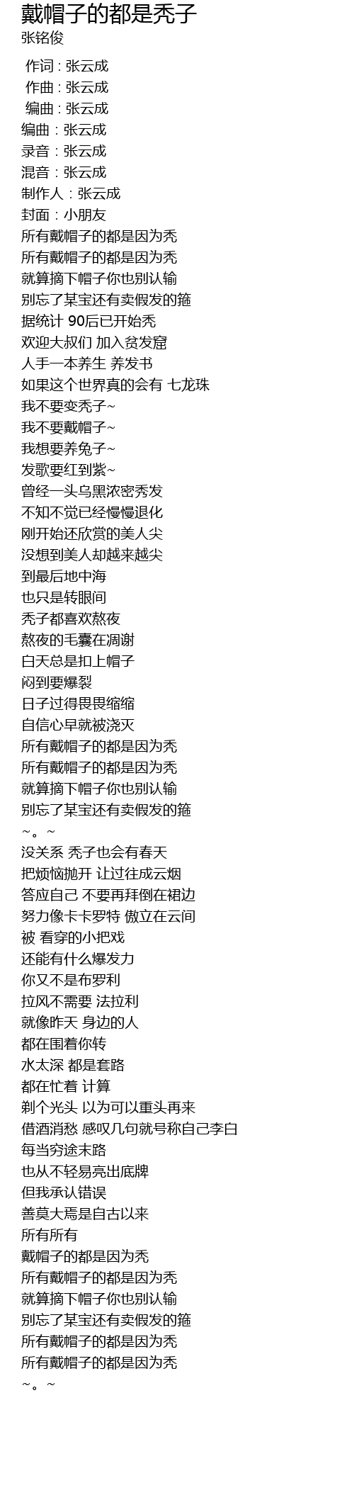 | [02:09.443] | 戴帽子的都是因为秃 |