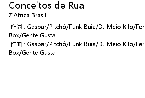 | [00:00.00-1] | zuò cí : Gaspar Pitch Funk Buia DJ Meio Kilo Fernandinho Beat Box Gente Gusta |