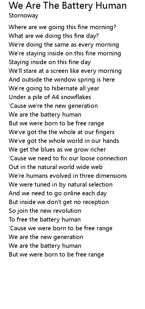 We Are The Battery Human Lyrics