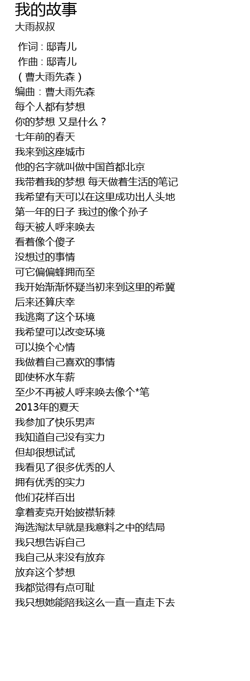 | [00:35.243] | 我带着我的梦想 每天做着生活的笔记 |