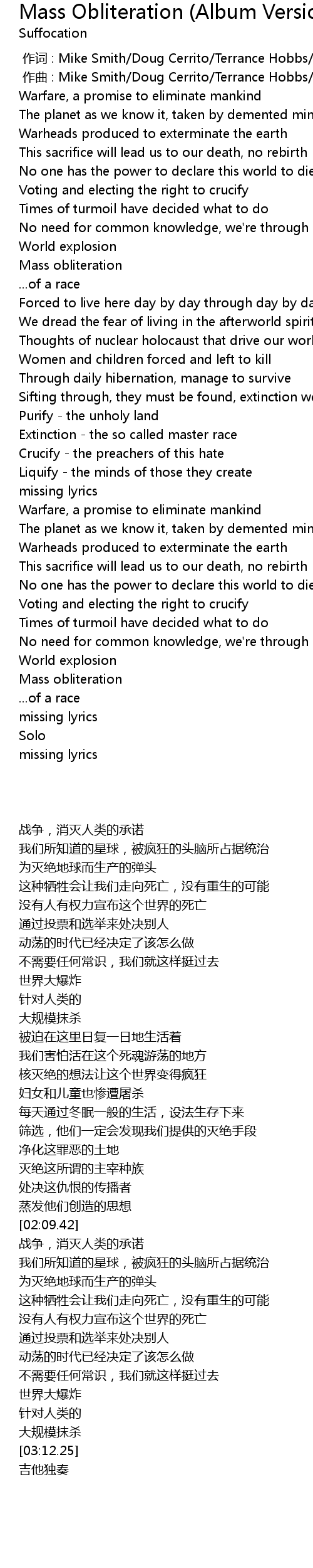 | [02:50.81] | Warfare, a promise to eliminate mankind |
