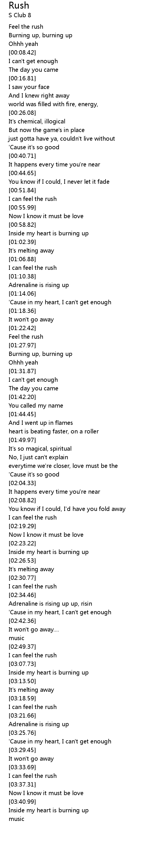 | [03:19.97] | I can feel the rush |