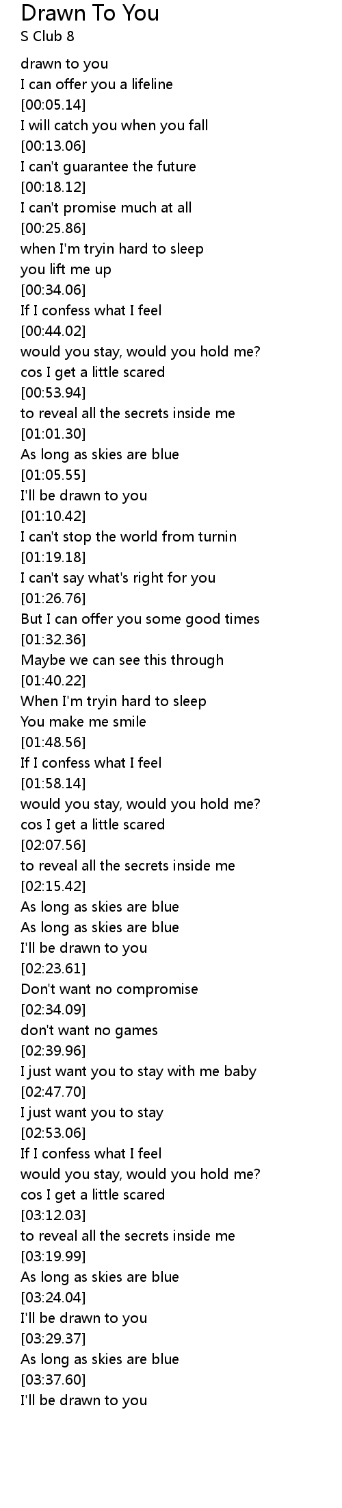 | [02:22.12] | I'll be drawn to you |