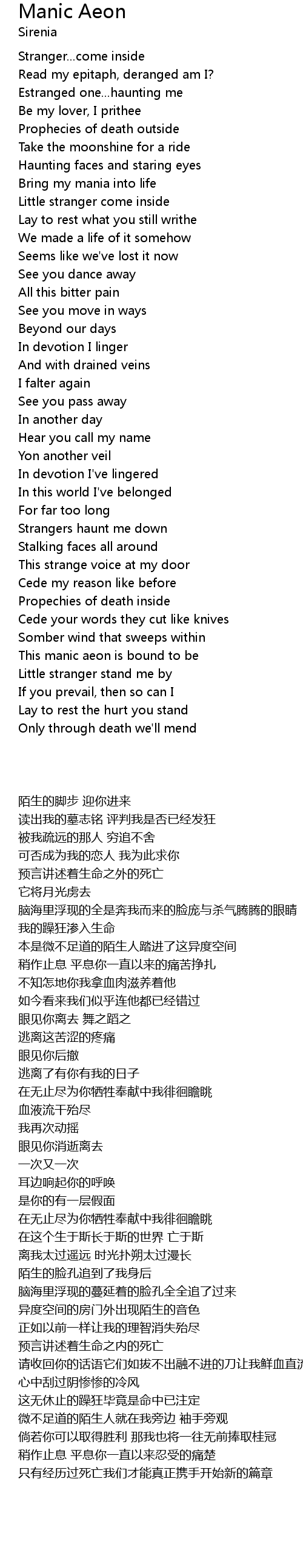 Manic Aeon Lyrics
