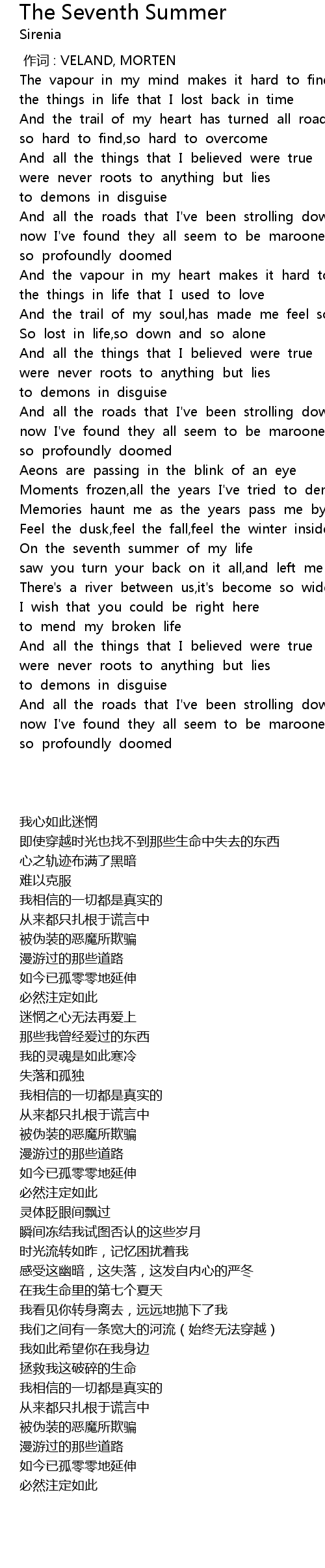 | [03:19.499] | Feel the dusk,feel the fall,feel the winter inside |