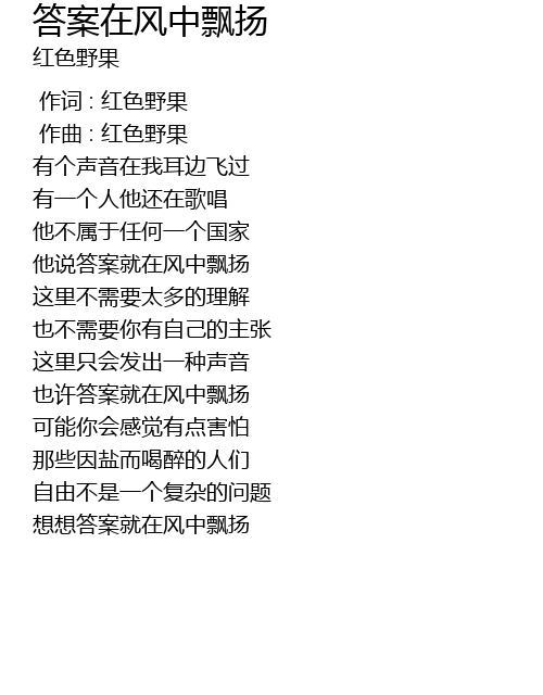 | [00:50.943] | 他说答案就在风中飘扬 |
