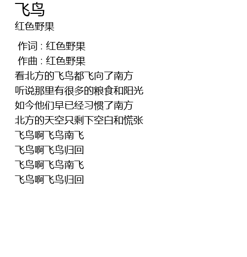 | [01:25.431] | 飞鸟啊飞鸟南飞 |