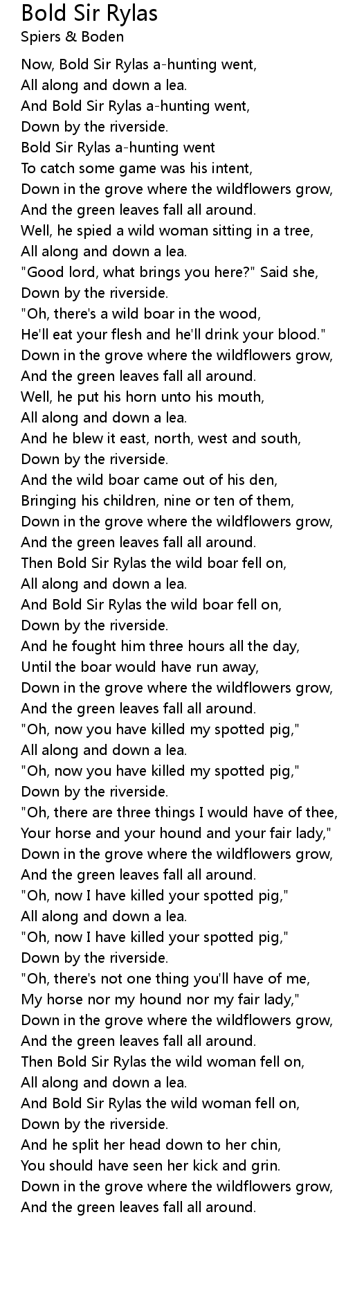 Bold Sir Rylas a-hunting went |